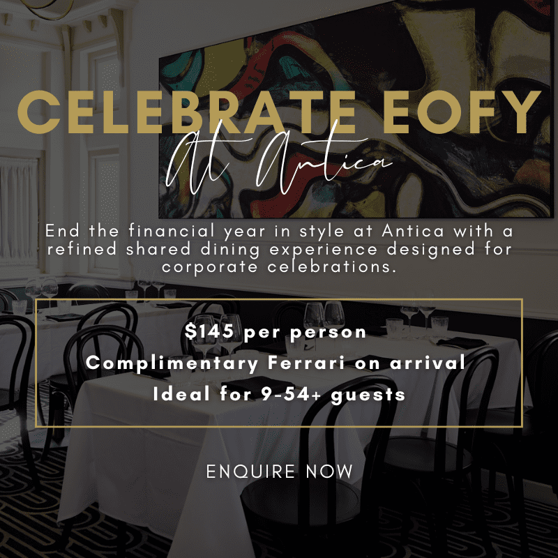 Antica Dining is the perfect venue in North Sydney to host your next event. Whether you’re planning a corporate meeting, intimate gathering, or grand celebration, our elegant spaces and curated menus provide the ideal setting for any occasion. For North Sydney private dining and event enquiries, contact us today.